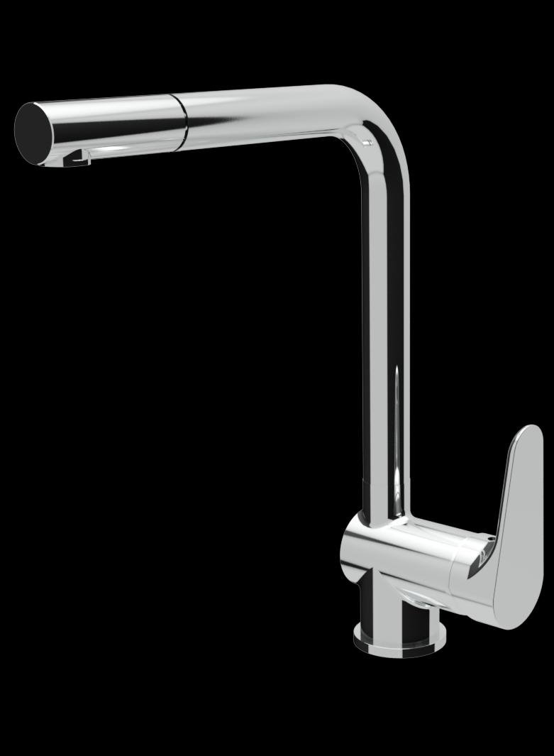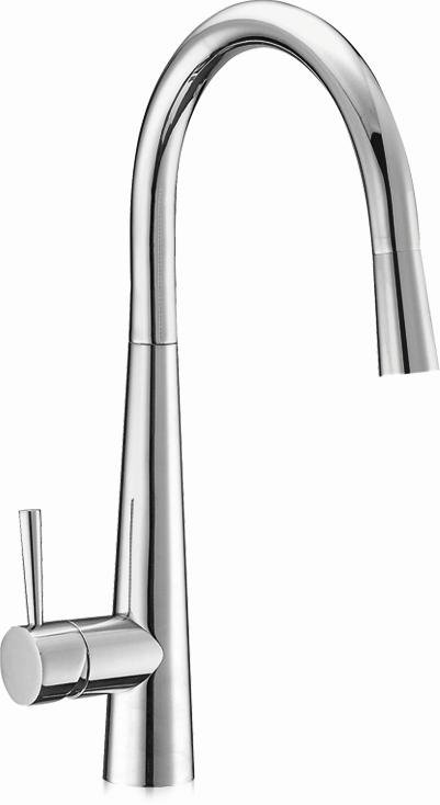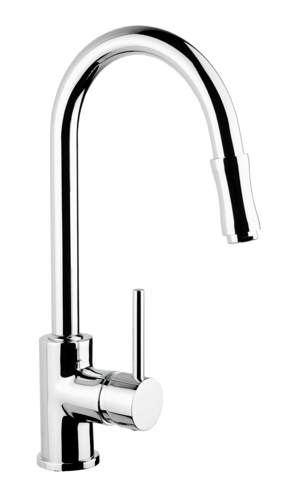 Dřezová stojánková baterie s horním otáčivým ústím a vytahovací sprchou