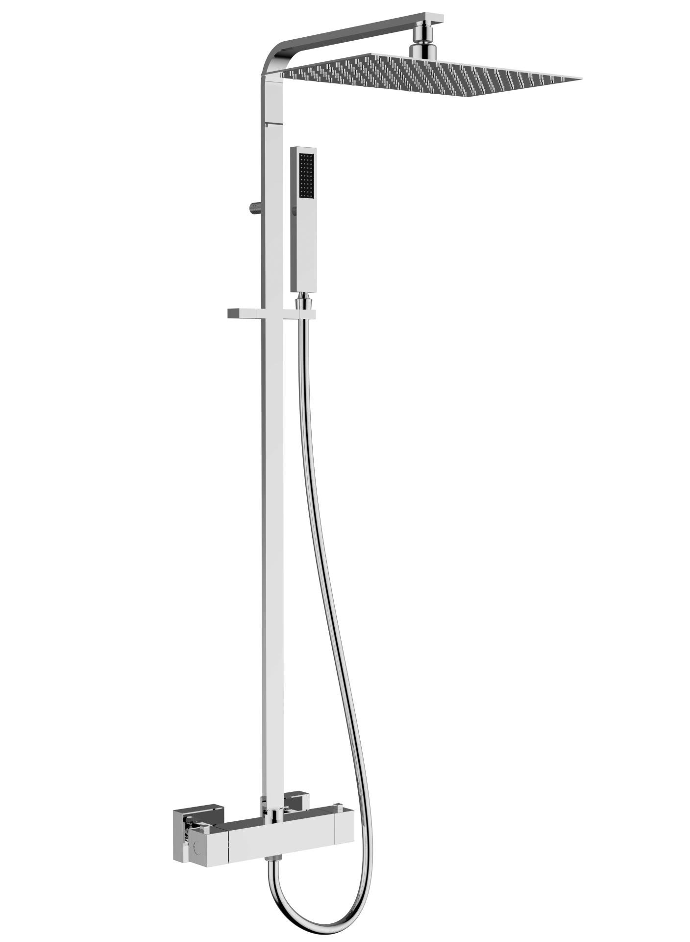 Sprchový komplet hranatý - termostatická baterie, sprcha s kloubem 250x250 mm a sprchová růžice - anticalcare, hadice