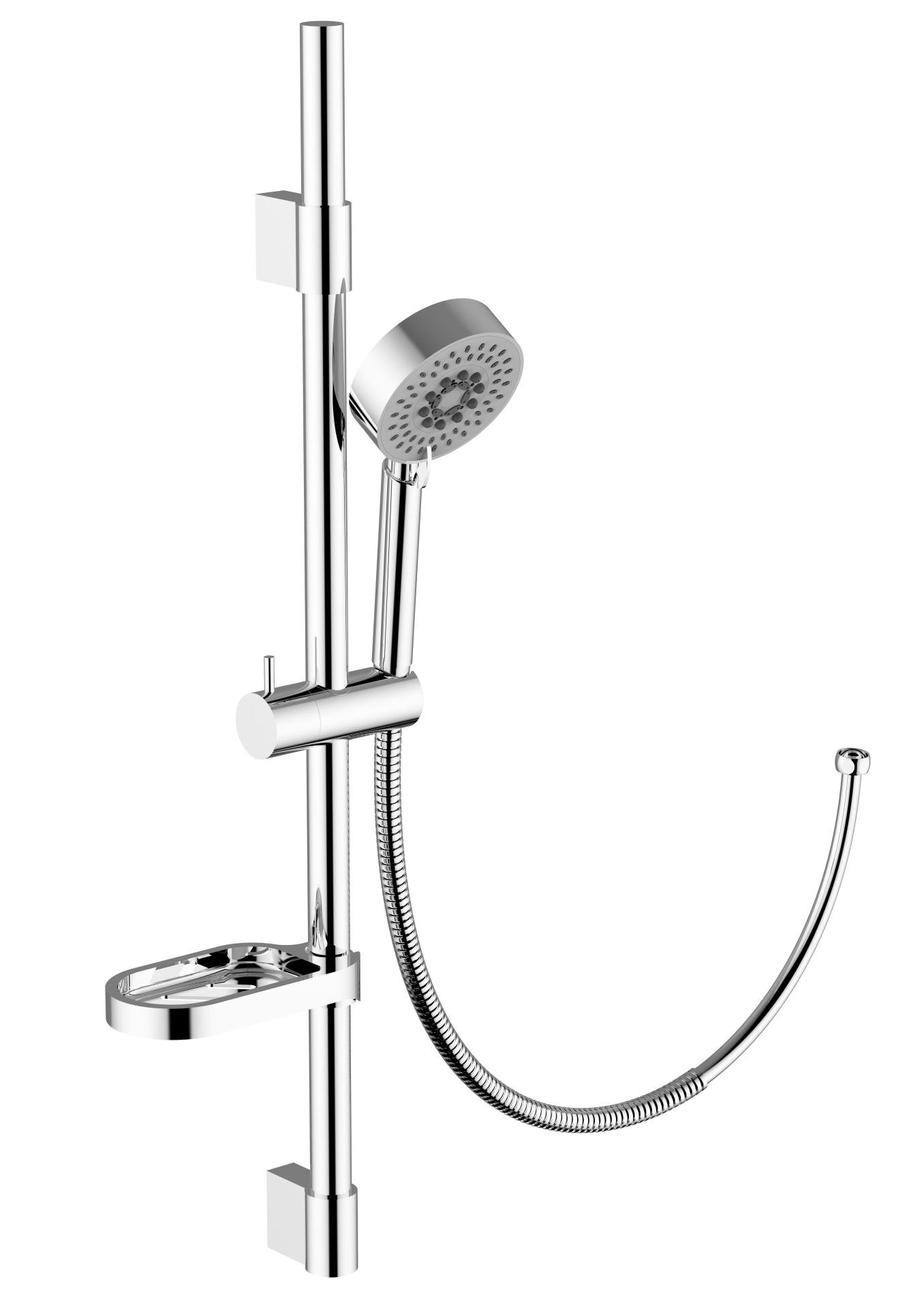 Sprchový komplet - posuvný držák, hadice, sprchová růžice - anticalcare, 5-polohová, mýdlenka